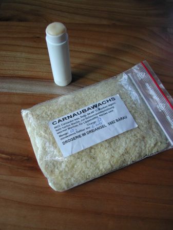 Carnaubawachs bestimmt die Härte der Lippenpomade: ist diese zu hart, wurde zuviel - ist sie zu weich, wurde zuwenig Wachs zugesetzt.